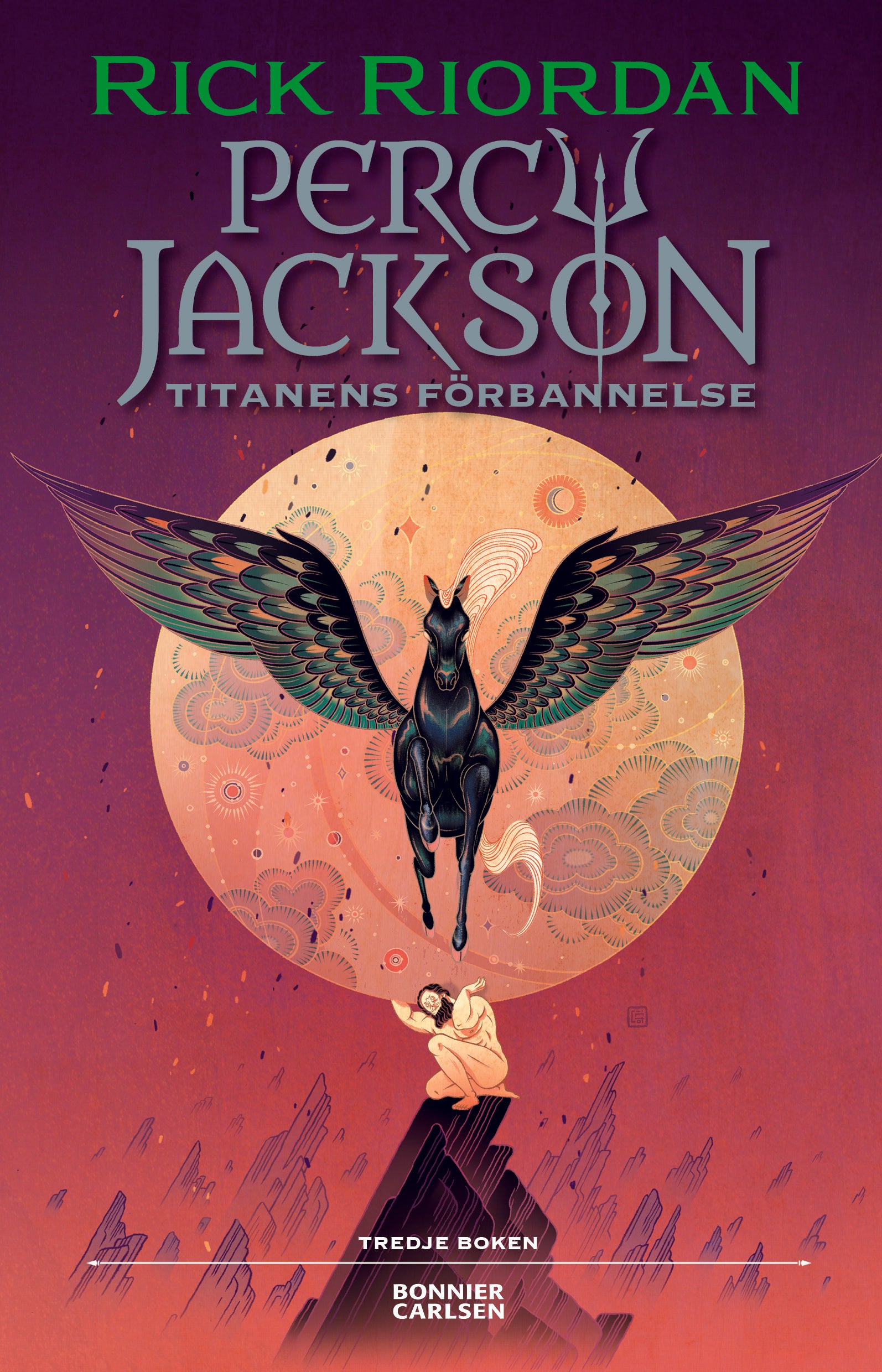 ”Titanens förbannelse” är den tredje boken om Percy Jackson. Percy har havsguden Poseidon som far och en vanlig dödlig som mamma. Det är en riktig slukarbok, som håller sina läsare trollbundna från första till sista sidan.I USA är Rick Riordans serie om halvguden Percy Jackson ett superfenomen i Twilight-klass. De övriga delarna i serien är "Född till hjälte", "Monsterhavet", "Kampen om labyrinten" och "Striden om Olympen".