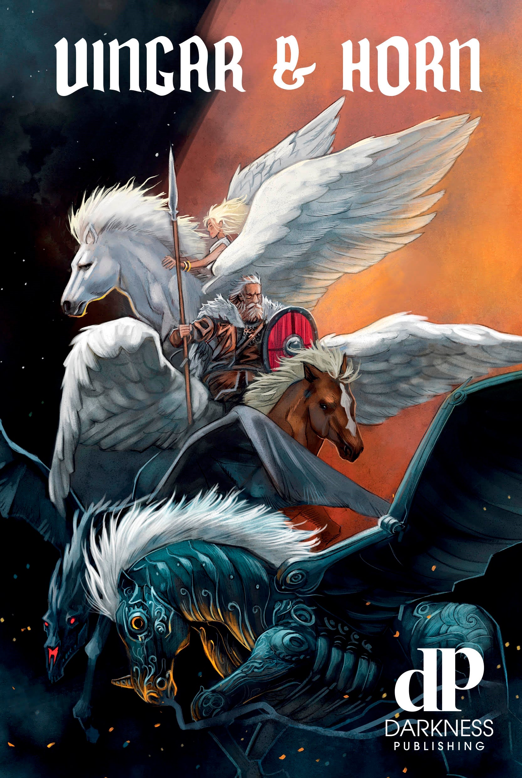 Vingar & Horn är en novellantologi med tema enhörningar och pegaser. Att enhörningar och pegaser är vilda och magiska kan vi gå med på. Men är de verkligen så vackra och fredliga? Vi tar dig med på resor genom tid och rum till andra världar. Vi bjuder på maktkamper och intriger. Kärlek och relationer. Rymdäventyr och skräck. Steampunk och urban fantasy. Men också klassisk fantasy.
